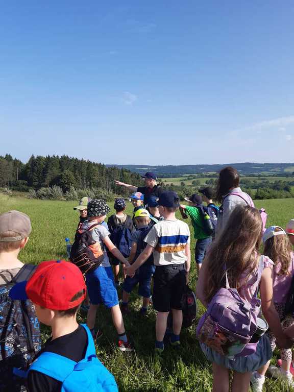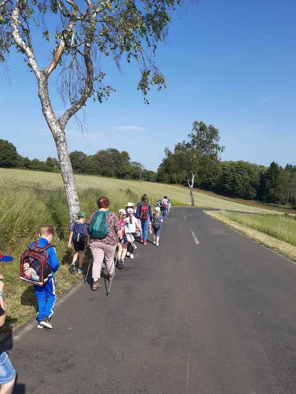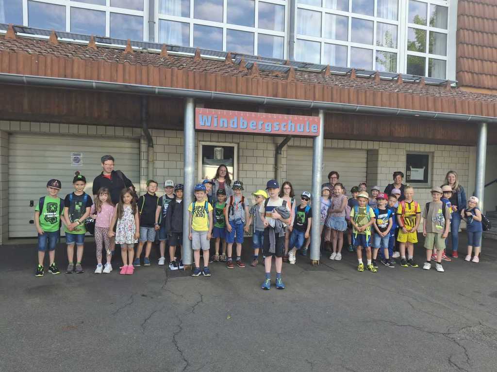 Von der Windbergschule aus fuhren die beiden Klassen mit dem Bus Richtung Schotten und wurden am Sportplatz Michelbach hinausgelassen.