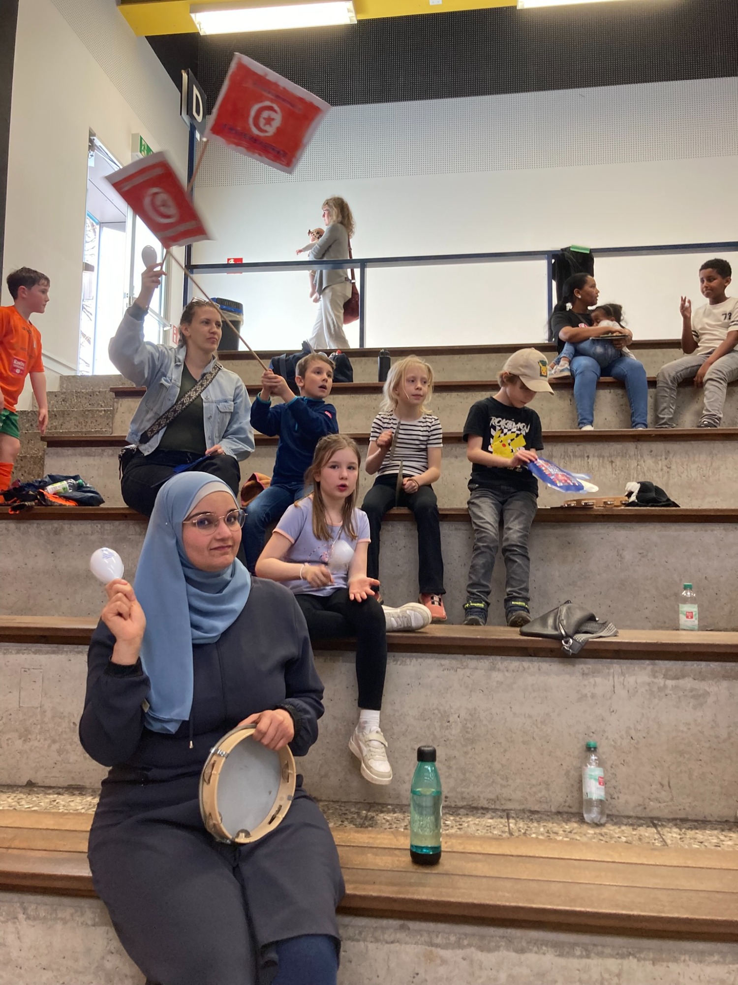 Auch die Windbergschule war bei diesem großen Ereignis dabei. Wir durften in der Gruppe F das Land Tunesien vertreten. Zur Vorbereitung wurde nicht nur viel trainiert, sondern auch fleißig Fanzubehör gebastelt. Mit Fahnen und Musikinstrumenten machten wir uns auf den Weg nach Neuhof zum Vorrundenspiel.